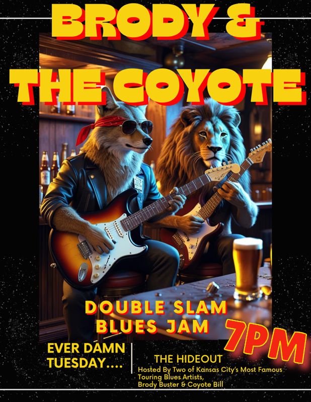 Your jam hosts are Brody Buster and Coyote Bill. You’ll have an epic time whether you just listen or jam. Backline provided, just bring your instrument to The Hideout, KC’s home of the blues north of the river!